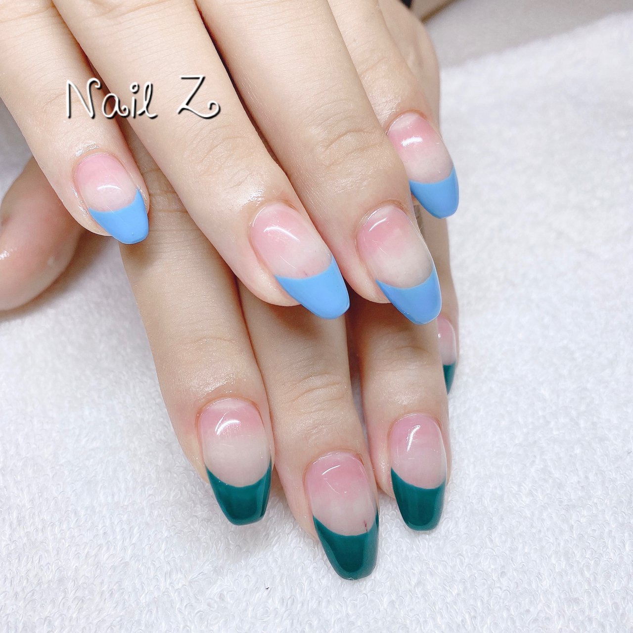ハンド フレンチ ミディアム グリーン 水色 Nail Z ネイルジー のネイルデザイン No ネイルブック