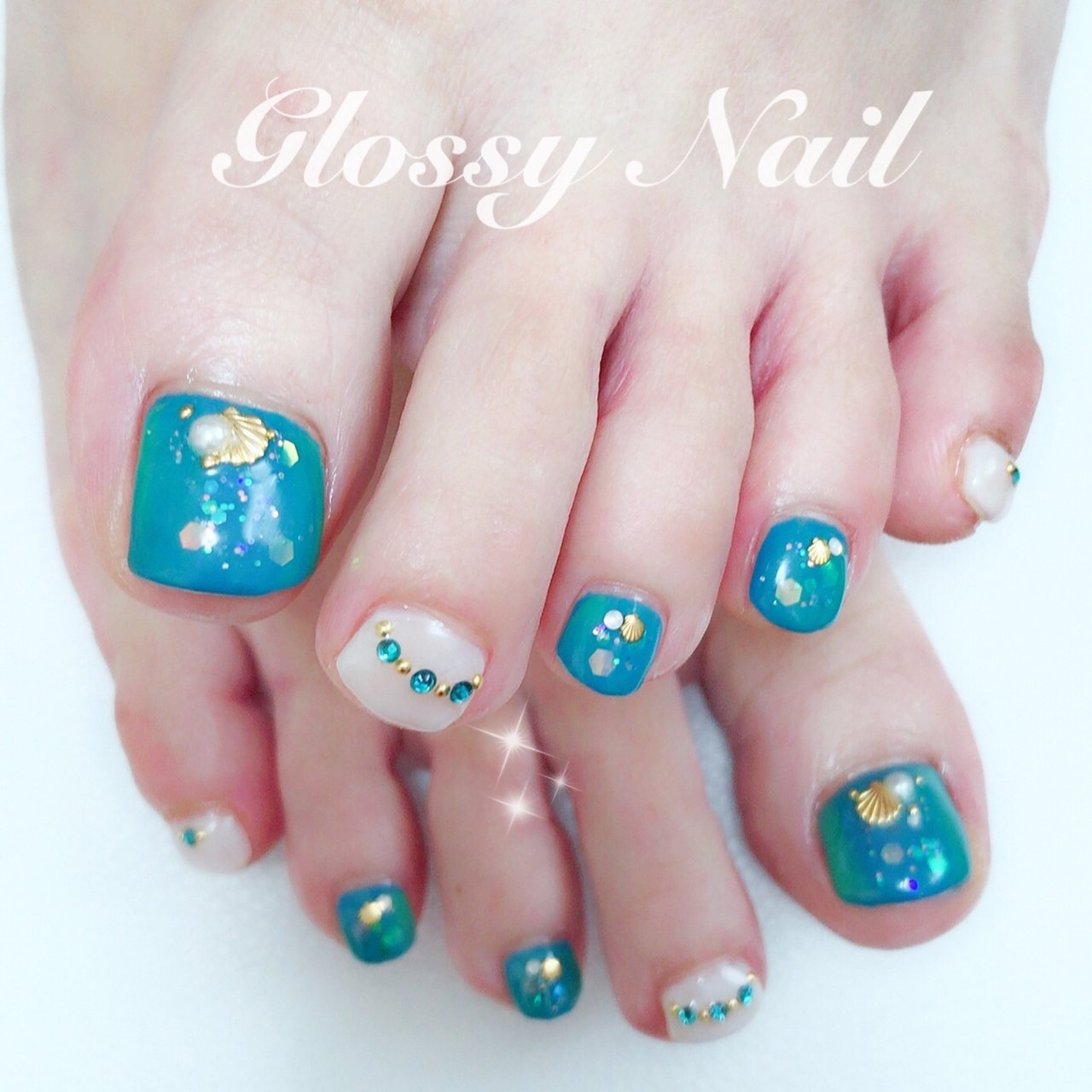 夏 フット ラメ シェル ターコイズ Ruby Nail07のネイルデザイン No ネイルブック
