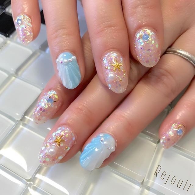 人魚の鱗 ネイル- 人魚の鱗マーメイドネイルのやり方 まずはマーメイド感のある土台の色づくりから。 ベースジェルを塗ったら、シアーなホワイトを全体に塗って硬化します。 次に、クリアブルーとクリアピンクをランダムに置いて、マーブルに塗って硬化します 様々な夏のネイルデザインを紹介しました。 ネイルのデザインは流行によって変化も大きいので、 17年版を小まめに押さえておきたいですね。 また新しく登場した人魚の鱗ネイルも、要チェックです! 夏のワクワク感を更に高めてくれる夏ネイルで、